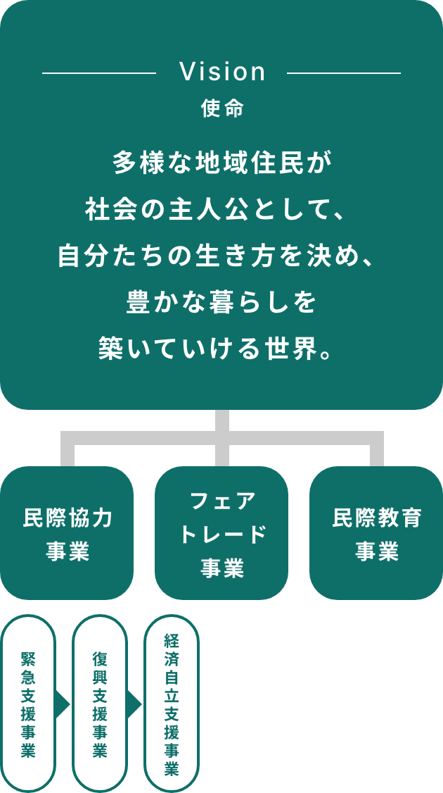 豊かな暮らしを築いていける世界」というビジョンを達成するため、