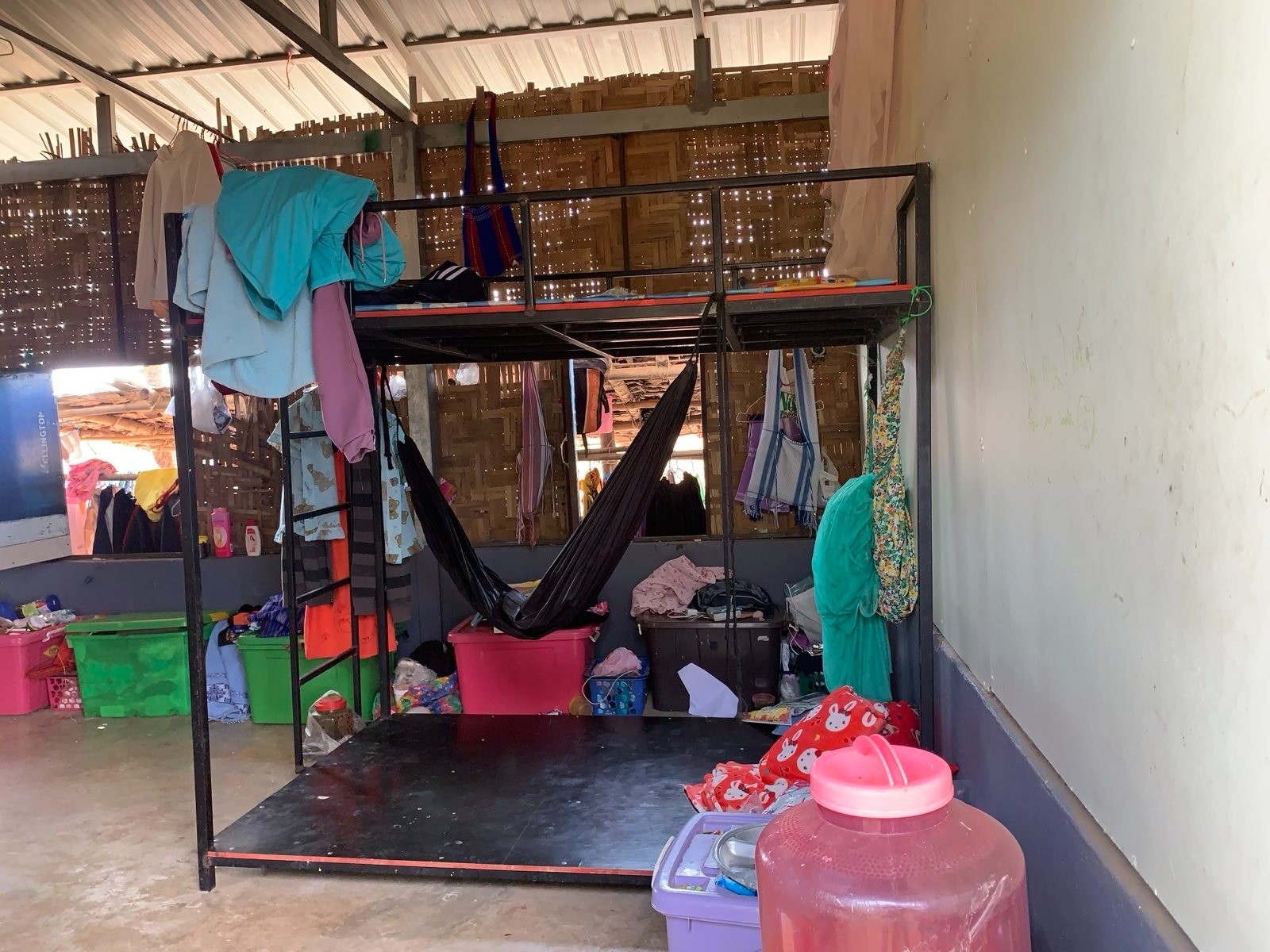 多くのMLCは、教会や寺院、助成団体、保護者などからの寄付などで運営されていますが、財源が安定せず綱渡りの運営を続けており、教室や教材、教員の不足が深刻です。そのため、入学を希望する子どもたちすべてを受け入れることができず、学習の機会を得られない子どもも少なくありません。また、安全な場所で教育を受けさせたいという保護者の希望から家族と離れて単身でタイへ避難する子どもや、家庭での養育が困難な子どもたちは、MLCに併設された寮で生活しています。しかし、雨が降ると雨漏りや雨が吹き込むような場所で寝起きし、十分なスペースがなく1人用のベッドを2人で使ったり、支援が少ない時は出される食事もご飯に調味料のみだったりと、安定した生活環境の整備が課題です。