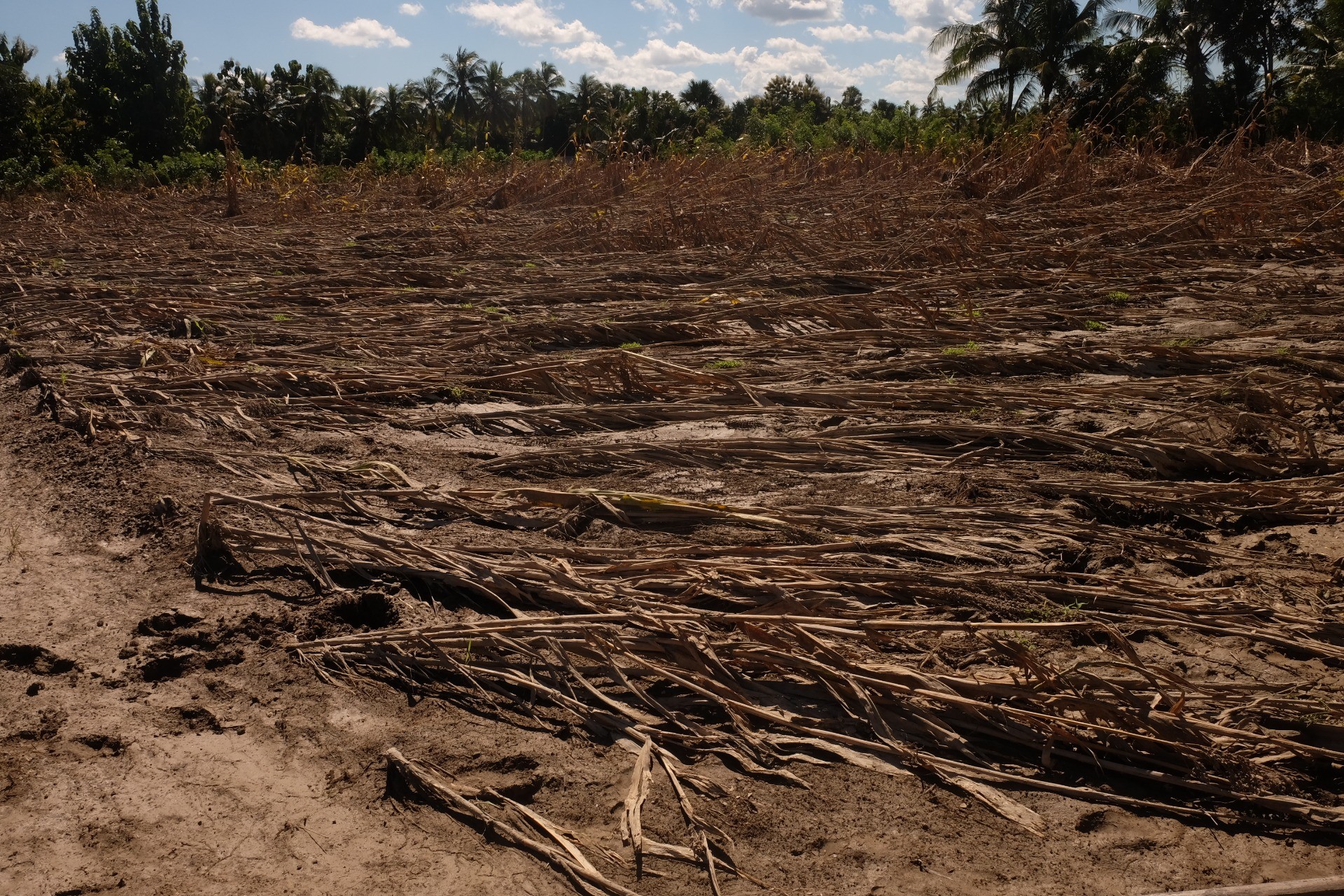 洪水によりなぎ倒されたソルガム(写真提供:Alfred Welhelmus Djami)