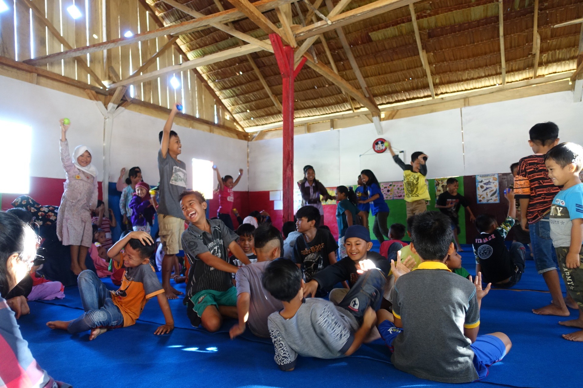 中部スラウェシ州の州都パル市では、約16,500人が9か所の緊急避難所で避難生活を送っており、その避難所も十分な設備が整っておらず、トイレの設置も間に合っていない状況でした。10月からは雨季が始まり、二次被害も懸念されました。余震が続く中で、親と離れて不安に震える子どもたちの存在も大きな課題でした。