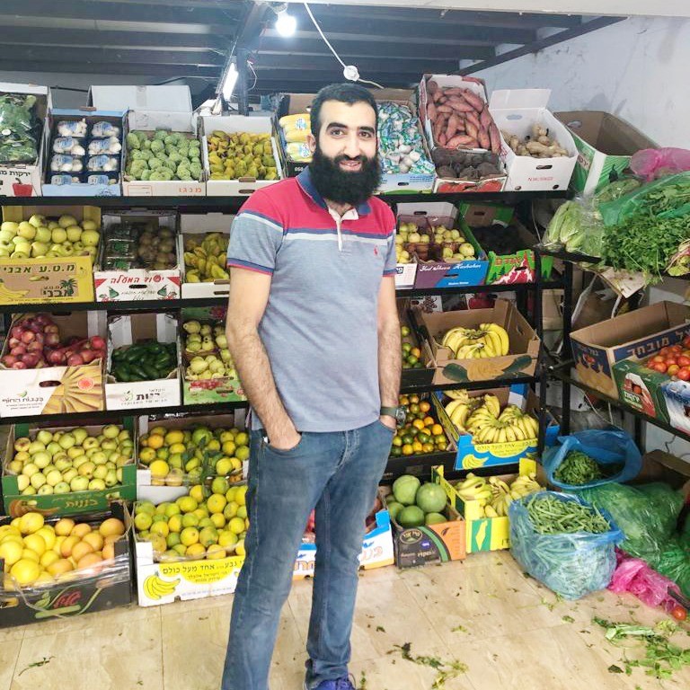 北アシーラ町で八百屋「アッシャーム」を経営しています。2018年に兄弟と一緒に開店しました。北アシーラで一番大きく、お客さんがひっきりなしに来る人気店なんですよ。大量の野菜くずや売れ残りと、プラスチックや段ボールを分別するのは手間がかかりますが、堆肥の材料として再利用されるのはとても良いことだと思い、続けています。西岸で流通している野菜や果物の多くは農薬を大量に使っているので、八百屋として、お客さんに安全な野菜を提供したいです。