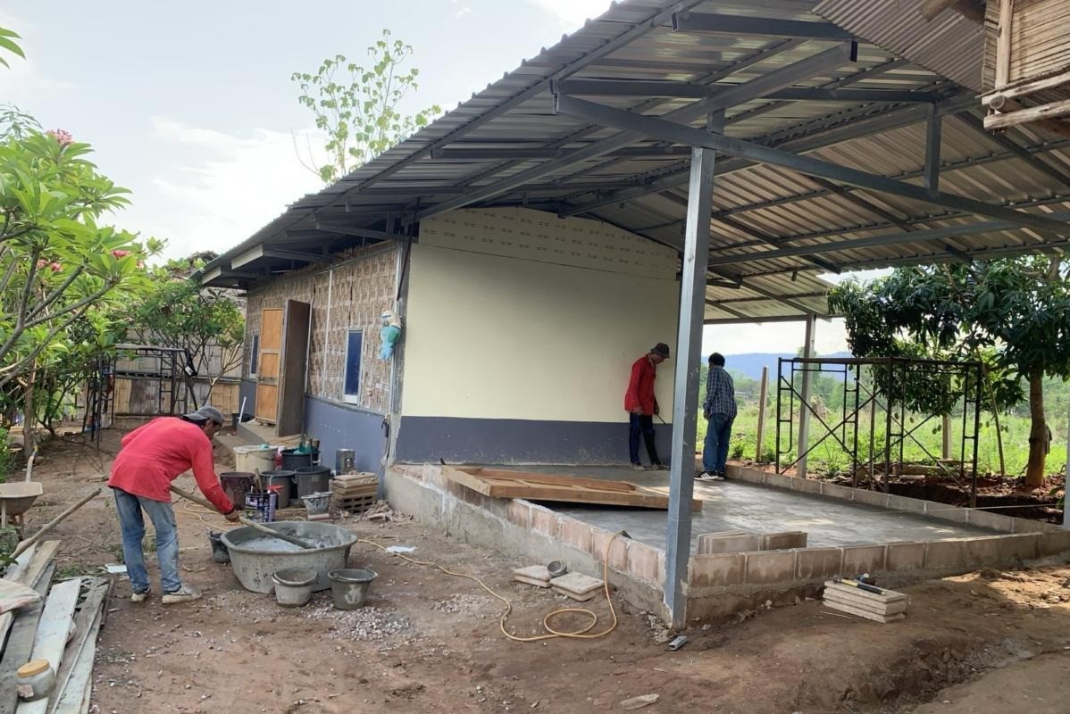 建設中の教室。この事業で建設資材を提供。教員や保護者が協力して建設を進めている